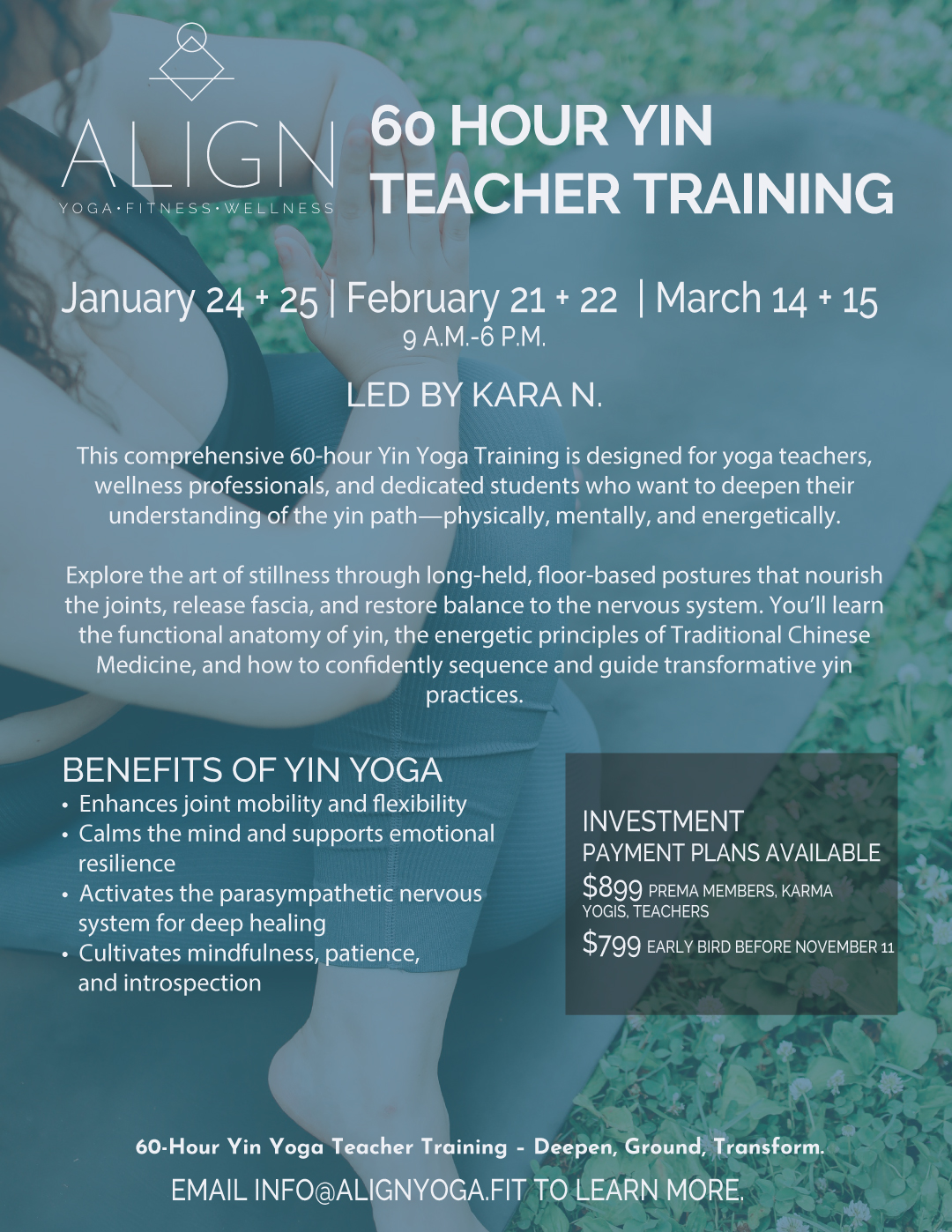 60 HOUR YIN TEACHER TRAINING LEARN MORE Want to get on the list? Have a few questions? Reach out and let’s chat more. Name Email Address Message 13 + 3 = Send